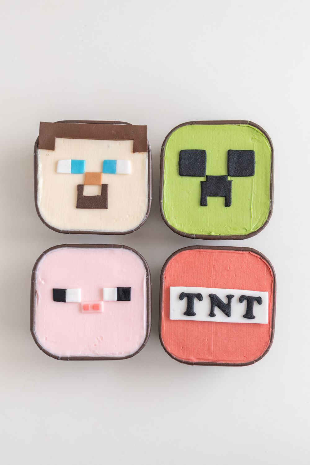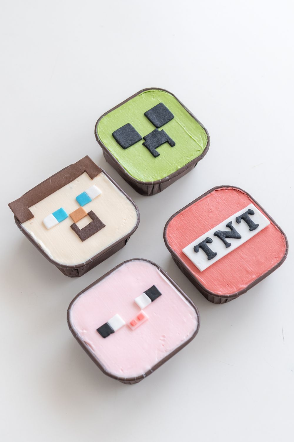🧁 How to Decorate the Cupcakes with Fondant: Finally, kids will place their fondant pieces on top of the frosted cupcakes to build their very own edible Minecraft blocks!